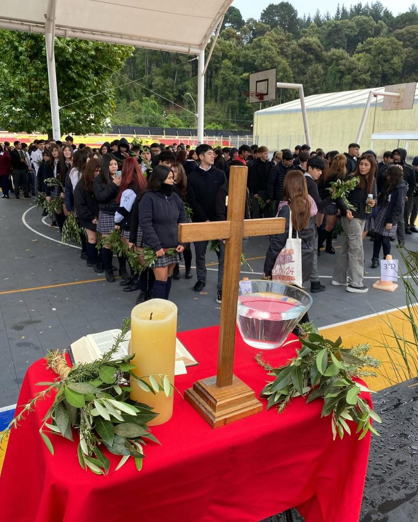 Con gran alegría dimos inicio a la Semana Santa en nuestra comunidad educativa, celebrando la bendición de Ramos junto a los estudiantes de 2do a 4to medio. A primera hora de la mañana, nos reunimos para conmemorar la entrada triunfal de Jesús en Jerusalén, recordando el verdadero sentido de esta semana tan significativa. Que estos días nos inviten a vivir con fe, esperanza y amor al prójimo.”